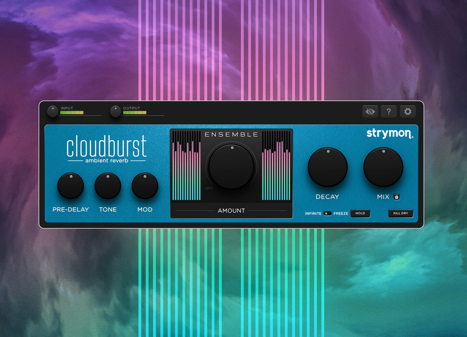 Cloudburst’s Ensemble effect works by continuously analyzing 48 different frequency bands in the source audio, and then generating corresponding upper harmonic partials of what it finds in each band. The result is a gorgeous synthesized string ensemble-like expansion of your reverberated signal that creates unique new textures, taking your tracks to a new and unforgettable level.